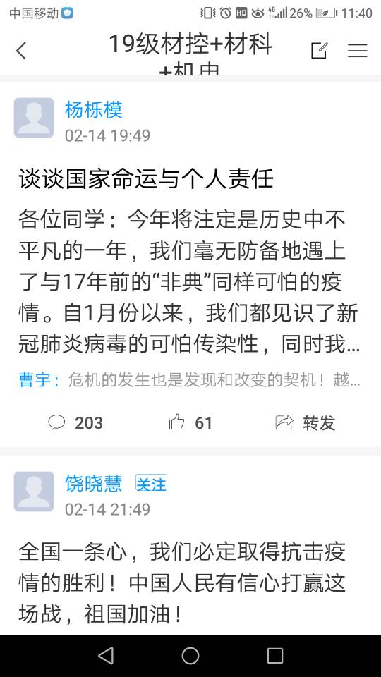 在yl23455永利官网党委和学工队伍的携手抗 “疫”努力下,我院学生未发现一例“确诊病例”和“疑似病例”,学生的线上课程学习也平稳有序进行。我院“含笑花”志愿服务发起的“驰援湖北 公益募捐”的活动,得到学校和省级新闻媒体的大力宣传和报道,还有学生党员团员分布在家乡各地,积极响应校院两级号召,主动配合当地政府参与疫情联防联控工作,展现出机械学子的良好风貌。