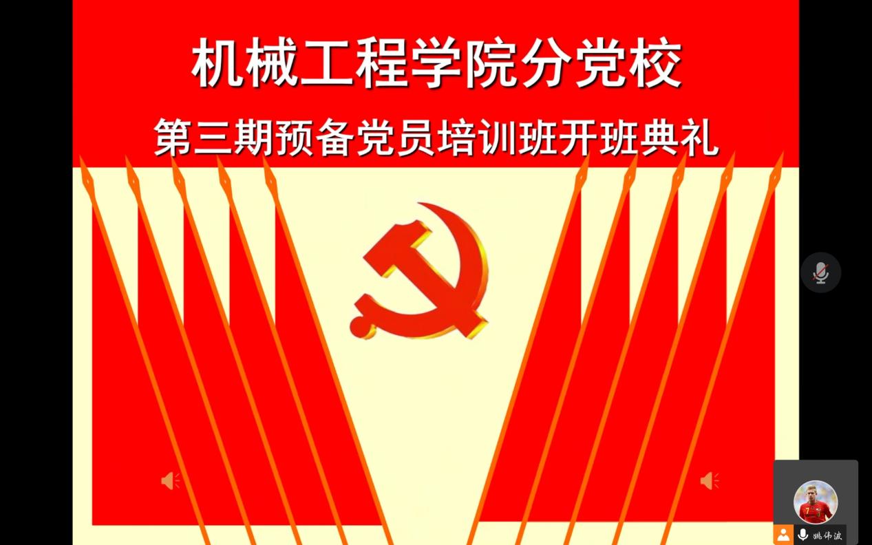 为加强对预备党员的教育管理,引导广大党员进一步尊崇党章、遵守党规党纪,做合格共产党员,1月4日下午,我院分党校举行第三期预备党员培训班线上开班典礼。学院党委书记伊长文、副书记秦广虎、培训班班主任姚伟波及全体学员参加了开班仪式。开班典礼由姚伟波主持。