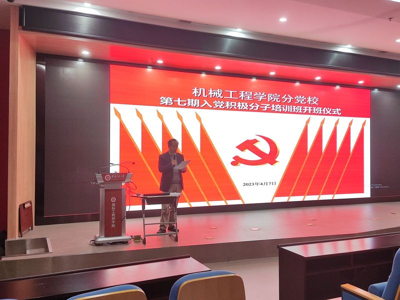 开班仪式在庄严雄壮的国歌声中拉开帷幕。2021级车辆工程专业温雅楠同学作为学员代表,从“按时上课、认真听讲、做好笔记、严于律己、遵守纪律、主动完善、积极靠拢”等方面进行发言。伊长文作动员讲话,他代表学院党委对参加培训的全体学员表示热烈祝贺,强调学院党委对积极分子培训工作的高度重视,并对全体学员提出几点期望和要求,一是学养提升为基,加强理论学习。要树立勤学不辍的观念,以提升学识修养为基础,与时俱进地理解领会党的理论精髓和路线方针政策,学深悟透习近平新时代中国特色社会主义思想和党的二十大精神;二是理想信念为核,端正入党动机。在提升学识修养的基础上,以树立正确的理想信念为核心,进一步端正入党动机,明晰入党为什么、为什么入党,厘清入党后如何有作为、如何做先锋;三是学以致用为重,坚持知行合一。要在刻苦学习理论知识的基础上,将所学所得付诸实践、时刻践行,带头将自身发展同学校“三全六专”育人工作推进、学校整体发展及伟大中国梦实现紧密结合。苏天一宣布培训班管理规定。