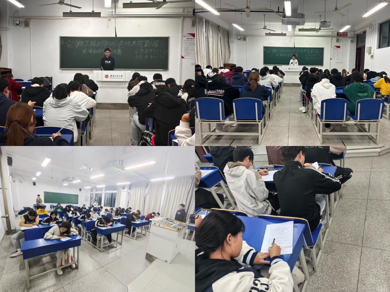 决赛以线下笔试形式在安徽工程大学6J403教室吹响,在进行知识与智慧较量。32位选手面对面,笔尖轻舞,思路纷飞,每一次思考都凝聚着对未来绿色世界的憧憬与承诺。决赛笔试题目紧密围绕生态环境保护的核心议题,深度挖掘环保背后的科学逻辑与人文关怀,既是脑力的大比拼,也是心灵的触动。决赛不仅是对知识的考验,更是对意志品质的一次磨砺,每一位参赛者都以最佳状态呈现,为自己心中的绿色梦想全力以赴。
