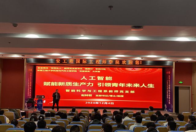 12月4日下午,yl23455永利官网在国际工程师学院赤铸报告厅举办“党音嘹亮”大讲堂活动,邀请人工智能学院智能与科学工程系教师党支部书记赵转哲教授作题为“人工智能:赋能新质生产力 引领青年未来人生”的专题讲座。学生党员和入党积极分子100余人聆听了讲座。讲座由学院党委副书记秦广虎主持。