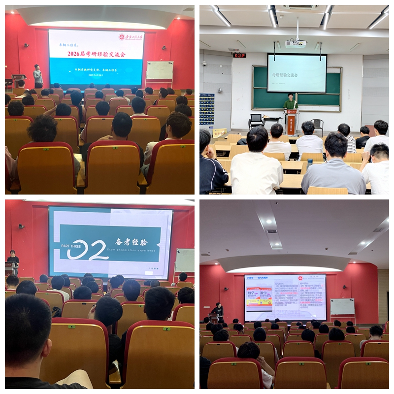 各专业考取研究生的学生代表从备考经历、各科复习方法、目标学校及专业选择、考研调剂注意事项、考研心理调适等方面进行了经验分享,让同学们更加明确考研的意义,增强考研的信心和决心。车辆213柯祝平同学表示,每个考研人都要先问问自己为什么考研,明确并坚定自己的目的,考研才会有动力。机制212李朝阳同学重点分享了自己考研院校的出题风格,也让同学们认识到分析目标院校真题的重要性。机制218朱正阳建议适当进行体育锻炼,增强体质的同时又能放松心情。交通211李如意同学重点分享了自己学习方法与技巧,那就是合理安排每日计划,以及巧用艾宾浩斯记忆方法。测控212李辉辉同学强调学习要注重效率,在规定时间内完成规定任务,不建议熬夜学习。机电211朱皓同学主要从调剂政策与条件、调剂流程与时间节点、收集调剂信息的渠道及方法三方面介绍了考研调剂,鼓励同学们在调剂后也能站住脚跟顺利上岸。