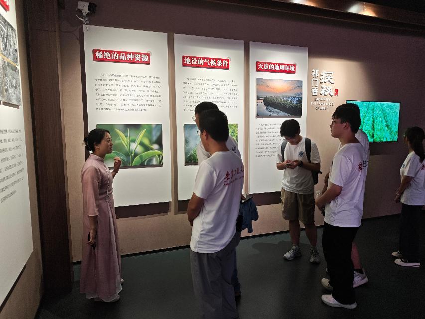 团队成员前往祁门县平里镇的祁门茶业改良场、祁门红茶产业集团有限公司进行了调研和参观。在改良场内,工作人员详细介绍了祁门红茶的发展历史以及机械化改造的进程,同时也让同学们对冯绍裘,胡浩川等率先设计红茶初制机械设备的茶叶大师们有了更深刻的认识。团队前往了中国祁红科技博览园进行参观,了解到现在高品级的茶叶还是由专业师傅们手工制作,了解到茶叶机械生产对比手工制作的不足点,如灵活性不足,难以适应茶叶的个体差异,在成茶的口感上也存在单一化的问题。团队成员亲自上手体验了传统茶叶制作的环节,实际感受每道工序的力道和技巧,从而思考机械替代的路径选择和技术难点痛点,进而体会到茶叶机械设计需要结合茶叶的特性和对温度力道完美平衡。